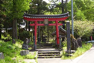 延命寺にある延文四年銘の板碑が納められている建物の脇にある階段をのぼると生石神社。