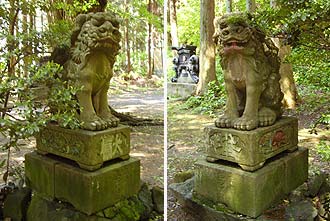 この狛犬は阿吽像とも口許と台座の彫刻(牡丹)に彩色されている。