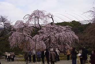 私が知る限りでは枝垂桜はソメイヨシノよりも花期が早い印象がありますが、この桜はこの日が見頃でした。